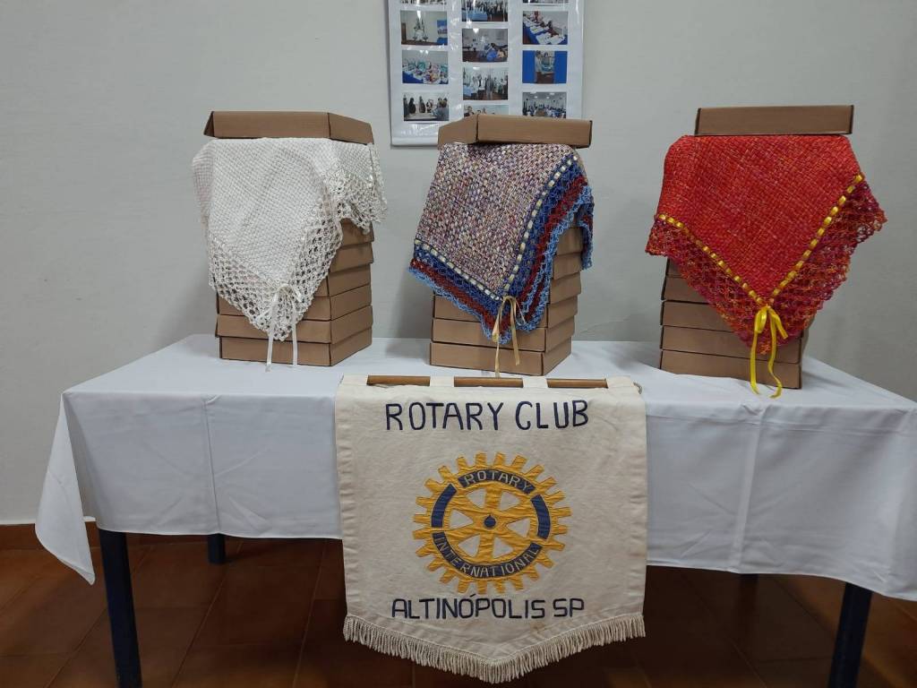 As mantas foram confeccionadas pela rotariana Maria Amélia A. Faria, no tear. E assim procedendo, o Rotary cumpre a sua função social e faz jus ao lema “DAR DE SI, SEM PENSAR EM SI”.